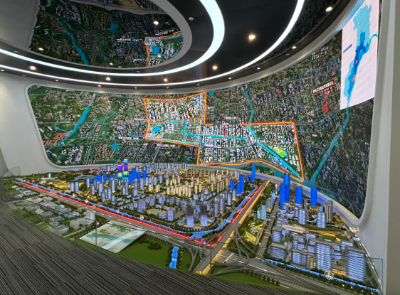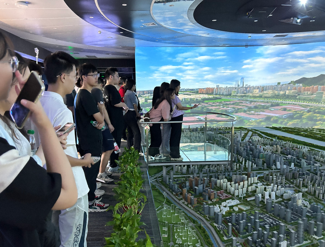 园区内现代建筑群错落有致,每一砖一瓦都蕴含着创新和科技的基因。一竞技官网科技IT菁英暑期实训营的学员们怀揣着对科技的无限憧憬步入研创园展厅。展厅内部设计充满科技感,一块块巨大的模型和显示屏映入眼帘,生动展现了研创园的科技规划,以及从梦想走向现实的开展历程。