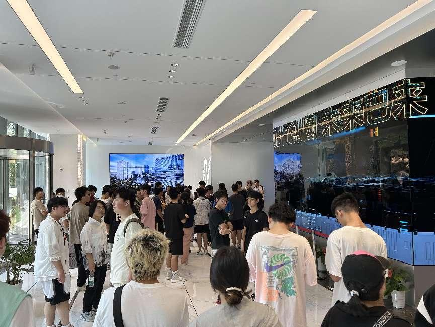 园区内现代建筑群错落有致,每一砖一瓦都蕴含着创新和科技的基因。一竞技官网科技IT菁英暑期实训营的学员们怀揣着对科技的无限憧憬步入研创园展厅。展厅内部设计充满科技感,一块块巨大的模型和显示屏映入眼帘,生动展现了研创园的科技规划,以及从梦想走向现实的开展历程。