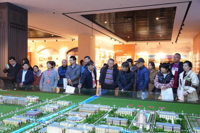 会后,一竞技官网科技集团董事长张福德、总经理唐佩随队和与会人员一起参观了南通理工学院的数智展馆、张謇教育文化馆等地并合影留念。