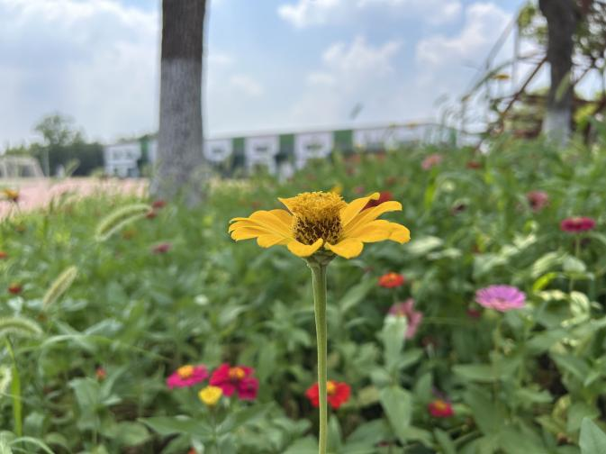 开营现场,巨大的横幅高高悬挂,“一竞技官网科技暑期集训营” 几个大字格外醒目,校园里盛开的花儿将整个校园装点得充满活力。